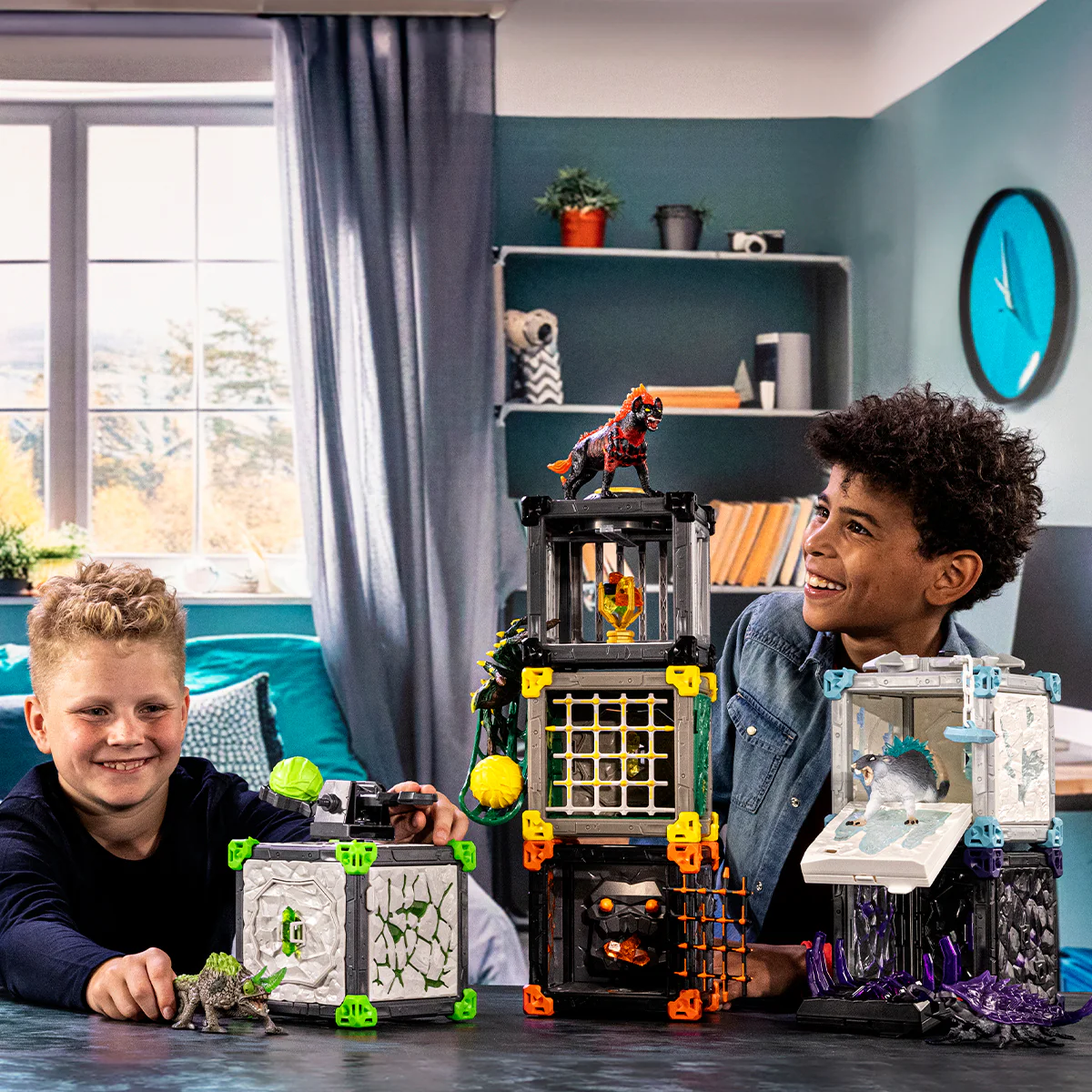 • The BattleCaves can be stacked into large fortresses and connected to form an arena. (Other sets available separately.)