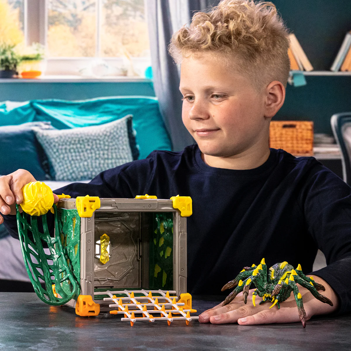 The Jungle Tarantula BattleCave transforms playtime into an epic adventure! This ELDRADOR® CREATURES set features a fearsome tarantula guardian protecting the World Crystal with ingenious traps—including a rolling orb mechanism and a hidden trapdoor beneath the vines. Kids face thrilling challenges as they navigate through the cave's tunnels and obstacles. Combine multiple BattleCaves to create an expansive arena for ultimate creature battles. Perfect for imaginative play and competitive duels!