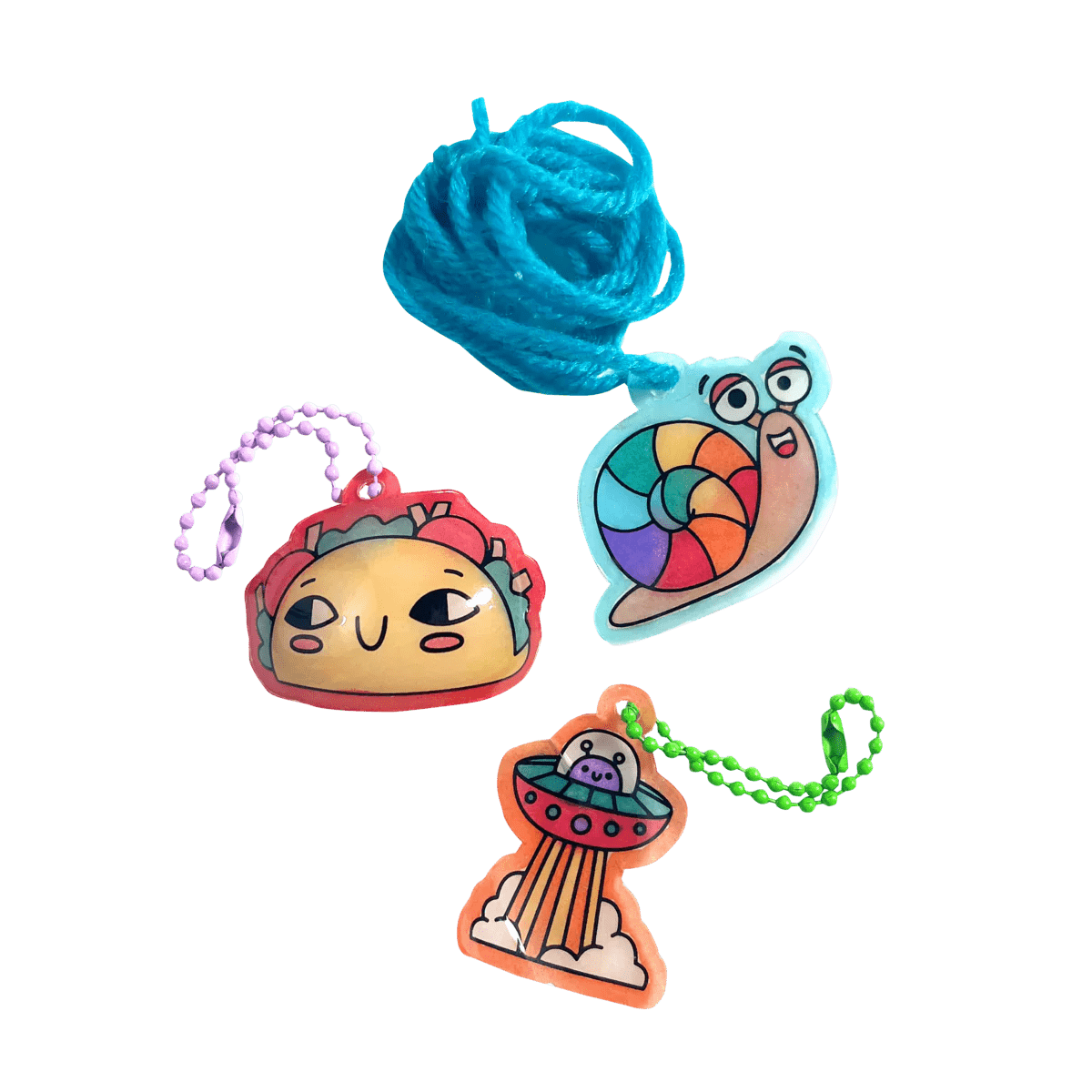 Who can resist smiling back at a grinning taco? The charms included in this shrink art kit are almost too fun and a good reminder that life should be a great time! Place them on a doorknob, create a DIY keychain, or hang them on a backpack - it’s the perfect way to keep you grinning. They also make a wonderful afternoon activity! Just use markers or colored pencils to color in one (or all) of the 20 charms, then have fun watching them shrink down as they bake in the oven, and finally, place them on one of the included cords or ball chains. You’ve got yourself a smile-inducing charm!