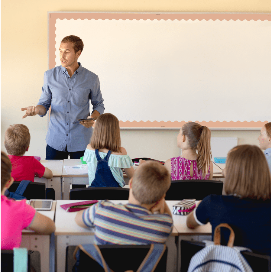 Reminiscent of a southwest landscape, this sand colored scalloped border trim will add appeal to your classroom decor! Create fresh looks for bulletin boards, windows, walls and class projects…even mix and match with coordinating decor for a classroom theme. Pack includes 12 border strips; each measures approximately 2 3/16" x 35", for a total length of 35'.