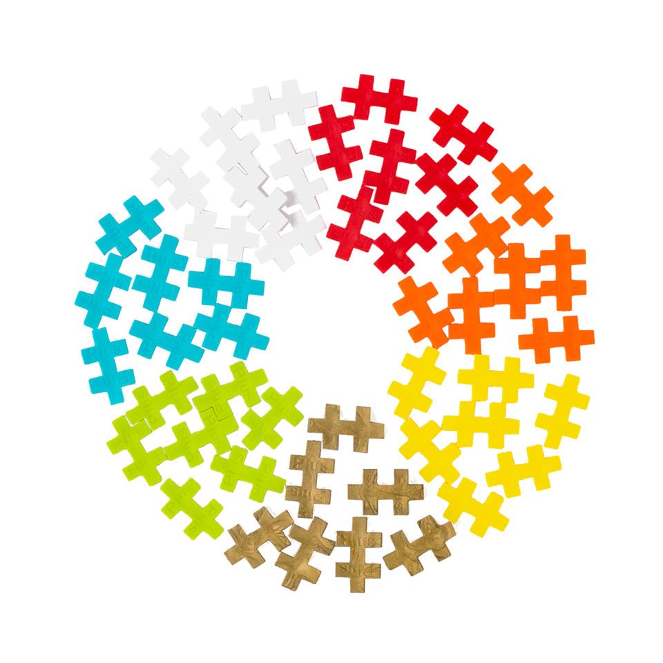 - 70 color pieces (Red, Orange, Yellow, Lime, Turquoise, Gold, White.)