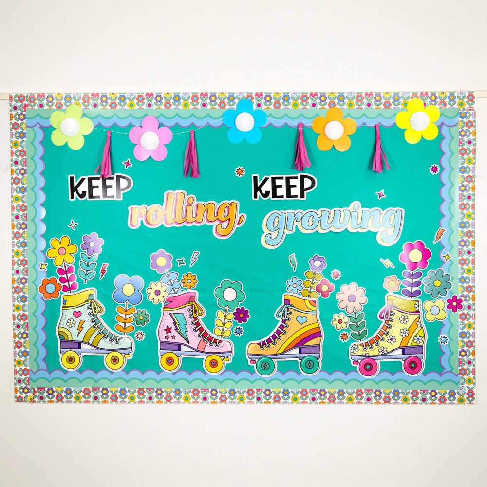 Retro Remix Keep rolling, Keep growing-Bulletin Board Sets-Tools 4 Teaching-Classroom Decor and More