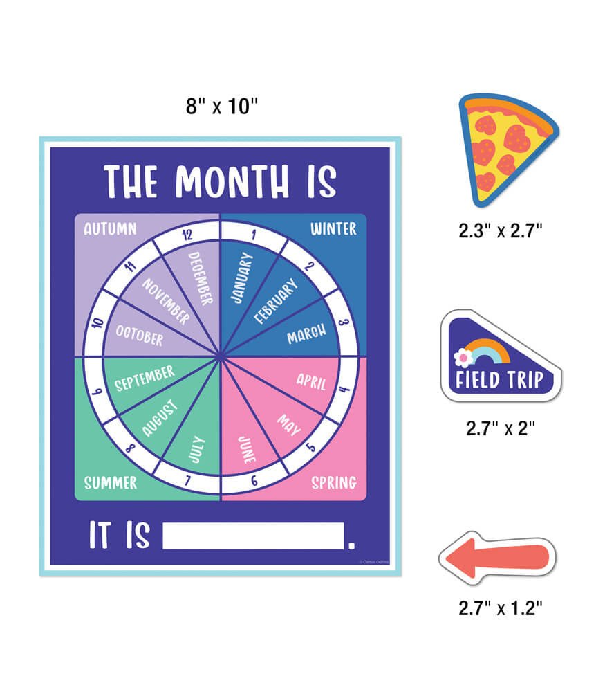 Bring the fun, colorful look of the vinyl sticker trend to your classroom while reinforcing calendar concepts, weather, and more with Carson Dellosa’s cheerful We Stick Together Calendar Bulletin Board Set.