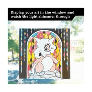 Create sun catchers for your window featuring some of your favorite Pokemon with Pokemon Stained Glass Art! Special vellum paper lets you color in 18 pieces of Pokemon art that look like stained glass. First, use the included double-tipped markers in 10 custom colors to create your masterpiece. Then, hang your artwork in a window and watch it light up! Each design is double trouble! Color the stained glass vellum pages for your windows, and the paper pages for your walls. Artwork features Pikachu, Eevee, Charizard, and many more. Plus, learn fun facts about some of your favorite Pokemon!