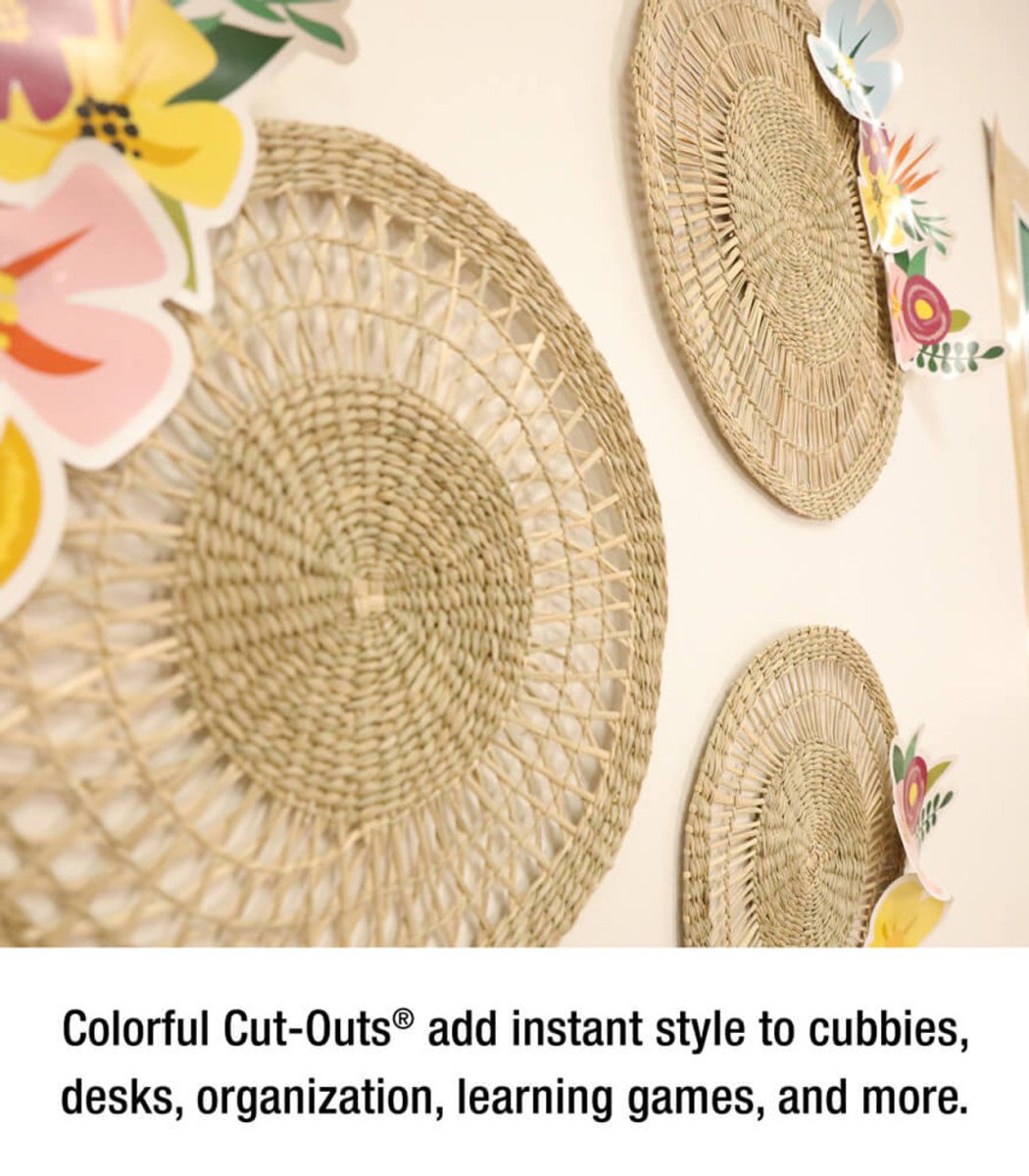 The 36-piece jumbo flower cutout set features an assortment of extra-large garden-themed cutouts in a variety of designs and colors, including: