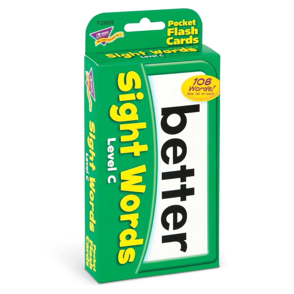 Learn to read on sight! Sight Words – Level C flash cards build fluency, inspire active learning, and increase reading confidence. This versatile, educational flash card set builds on Sight Words – Level A and Level B for even more practice. Develop reading skills and practice 108 sight words with this handy flash card pack.