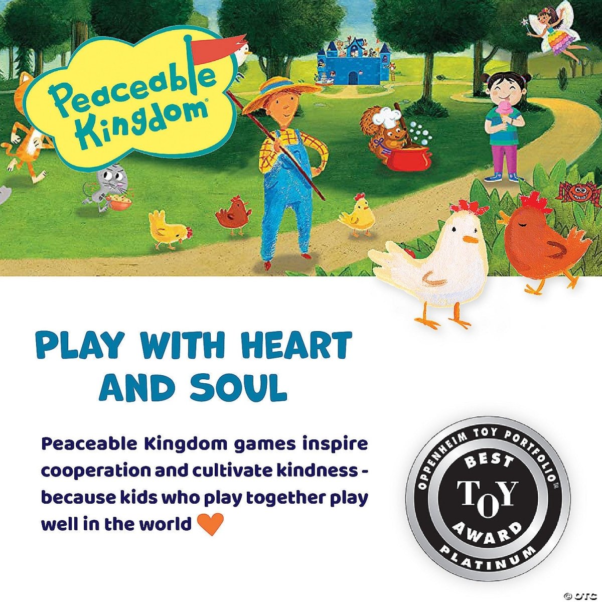 The baby chicks have flown the coop. Players help mother hen collect her chicks and bring them back to the coop. Spin and move, count the number of spaces, and collect that number of chicks. Take turns but work together. Collect all the chicks, and everyone wins! Count Your Chickens! eliminates stress, empowers a young learner, and teaches kids that playing together can be fun! Kids practice counting and cooperation. Help your kids learn at an early age how easy it is to cooperate! INCLUDES: 1 game board, 1 mother hen with stand, 40 baby chick markers, 1 spinner and instructions