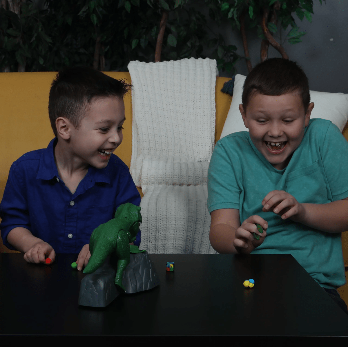 This hungry Dino has an eggstraordinary appetite! Roll the die to choose which stolen egg to rescue. Carefully reach in and take out the egg, but watch out – you never know when this T-Rex will roar and leap out at you for a mighty CRUNCH! Requires 2 AA batteries, not included.
