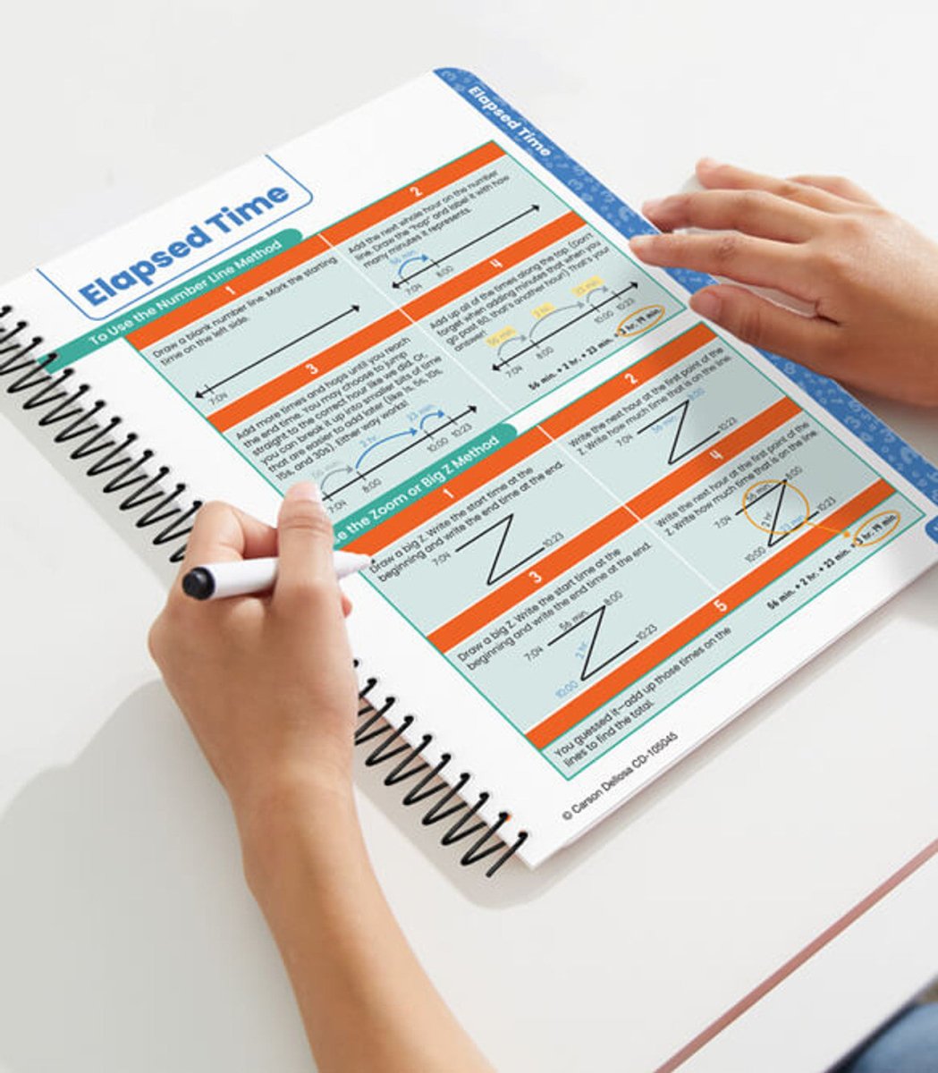 The 16-page 3rd, 4th, and 5th grade math book is an essential reference guide with step-by-step instructions and examples as well as vibrant visuals to help students, teachers, and parents understand math basics such as ten frames, number bonds, place value, and more.