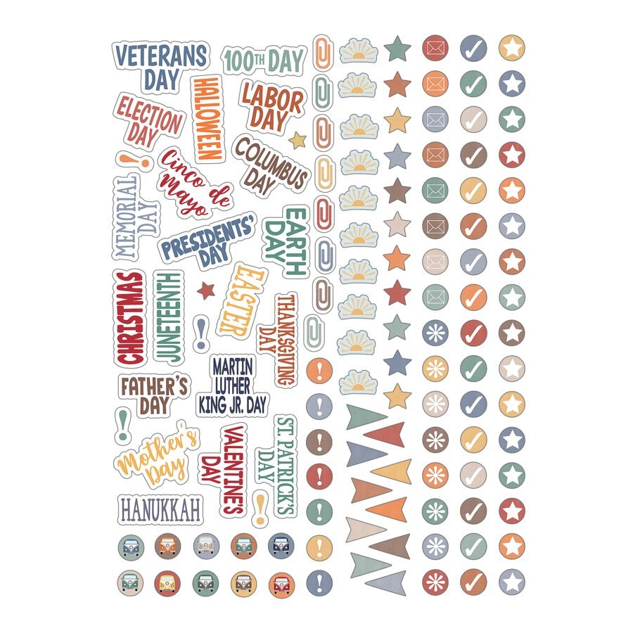 The lesson planner also includes a variety of colorful stickers to use throughout the year. Whether you need to prioritize the day’s events, add weekly reminders, highlight something special, or simply provide a bit of inspiration, these cheerful stickers will keep your lessons beautifully organized. 8½’’ x 11’’. 112 pages.