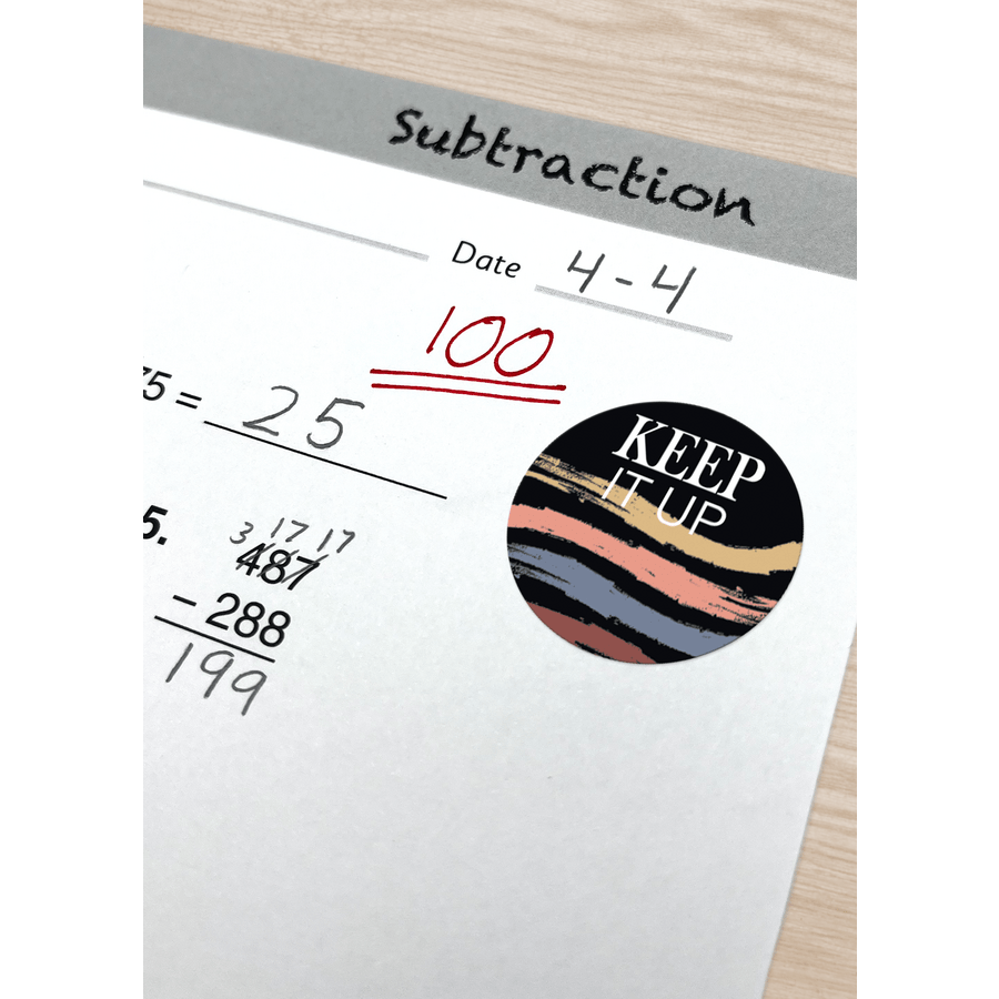 These cute, colorful stickers featuring inspirational messages help spotlight good behavior, boost motivation, and make good habits stick! Great on homework, incentive charts, and more. These stickers are nontoxic, acid-free and lignin-free. Pack includes 120 stickers, with 20 designs each measuring about 1⅞" x ½''.