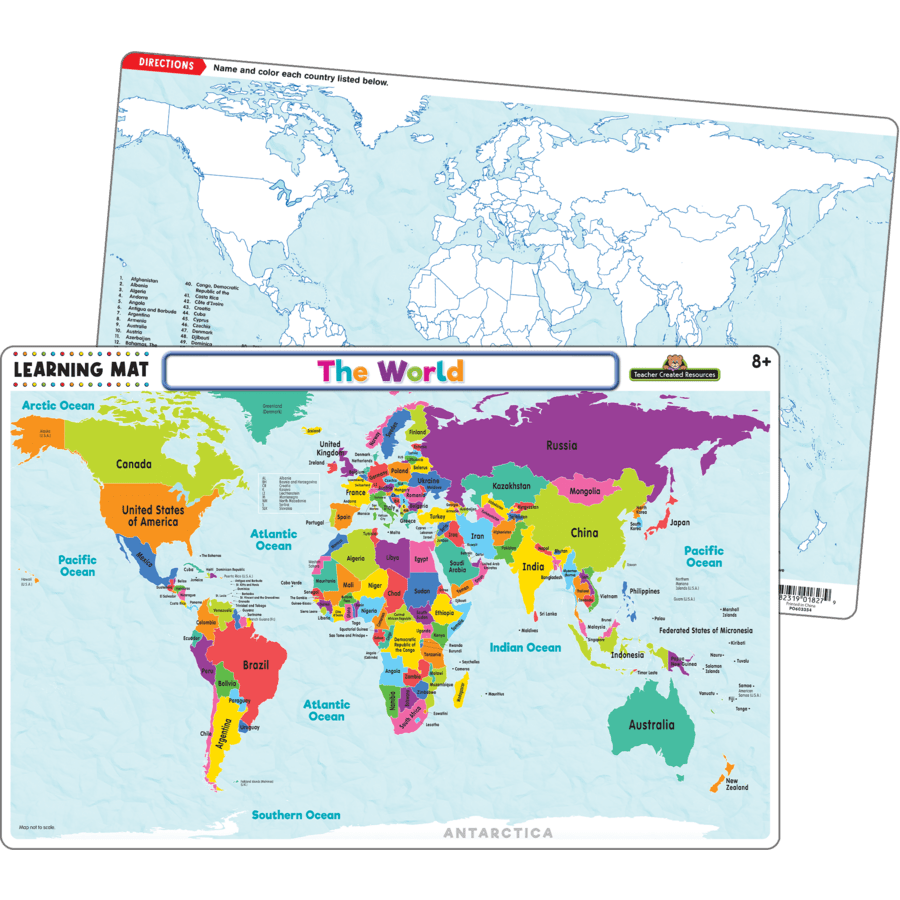 With this advanced learning mat, students will be able to quickly learn world geography! This durable write-on/wipe-off mat provides endless hours of learning and practicing essential skills. Great for at-home, for a fun meal-time activity, or take it on-the-go to use in the car or while eating out. Ages 8+.