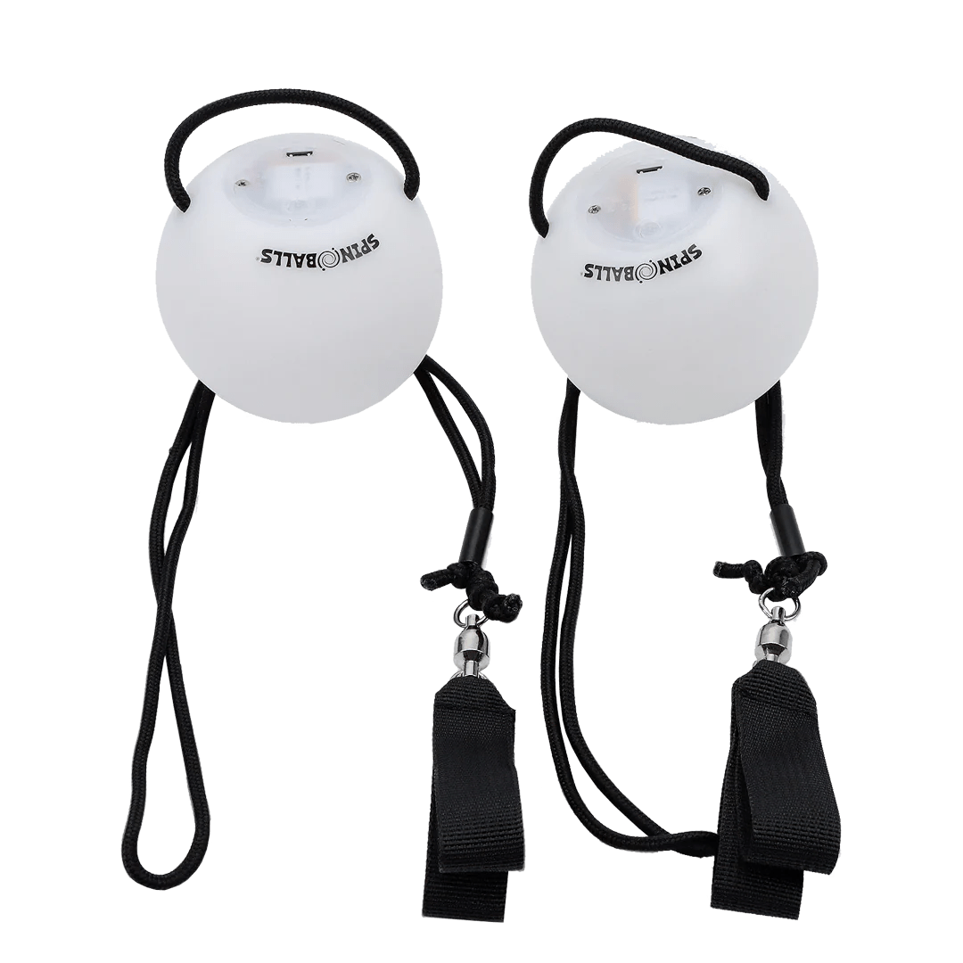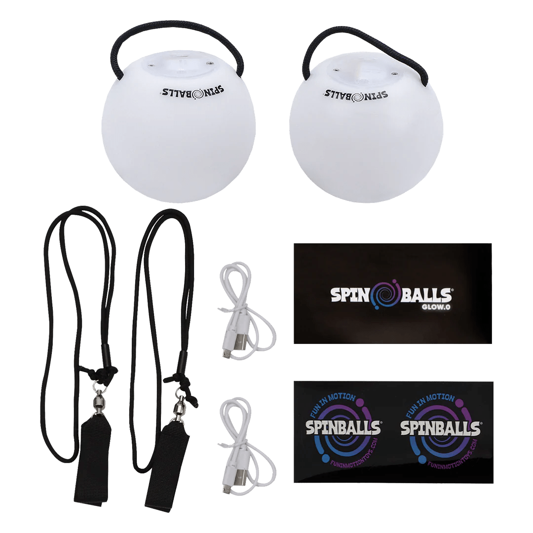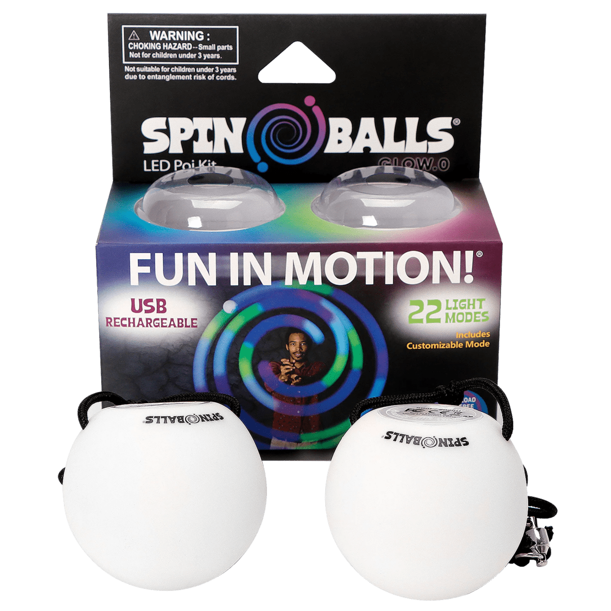 Spinballs Poi Set is USB Rechargeable with 22 Vibrant Color Light Modes & Patterns. Durable, soft-core balls with Adjustable Leashes & Double-Loop Handles.