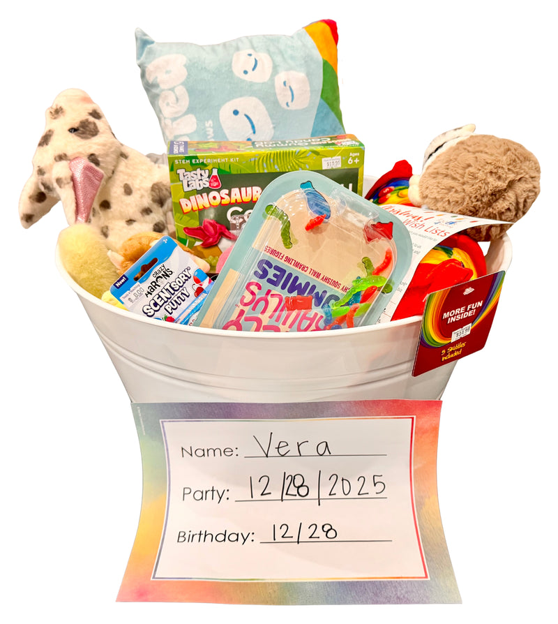 Vera made a really fun birthday Basket! Come check it out in-store, or shop from their gift registry online.