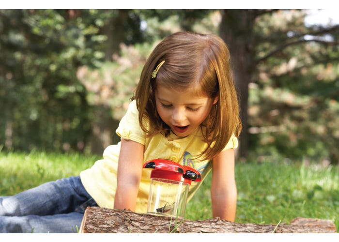 The wings on this engaging ladybug jar open to reveal a 3.5x magnifying lens for up-close observation! Keeps living critters (and other matter) secure with a screw-on cap and air vents. Makes a great classroom set!